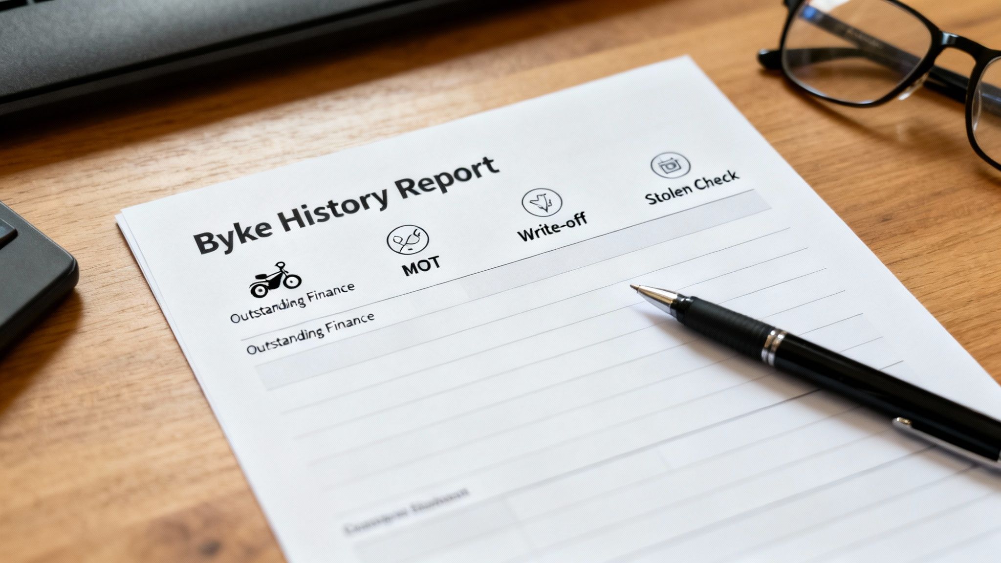The real value of a professional check is in the data you can't get for free. It’s the finance, theft, and write-off history that reveals a bike’s true story and stops you from making a catastrophic buying mistake.