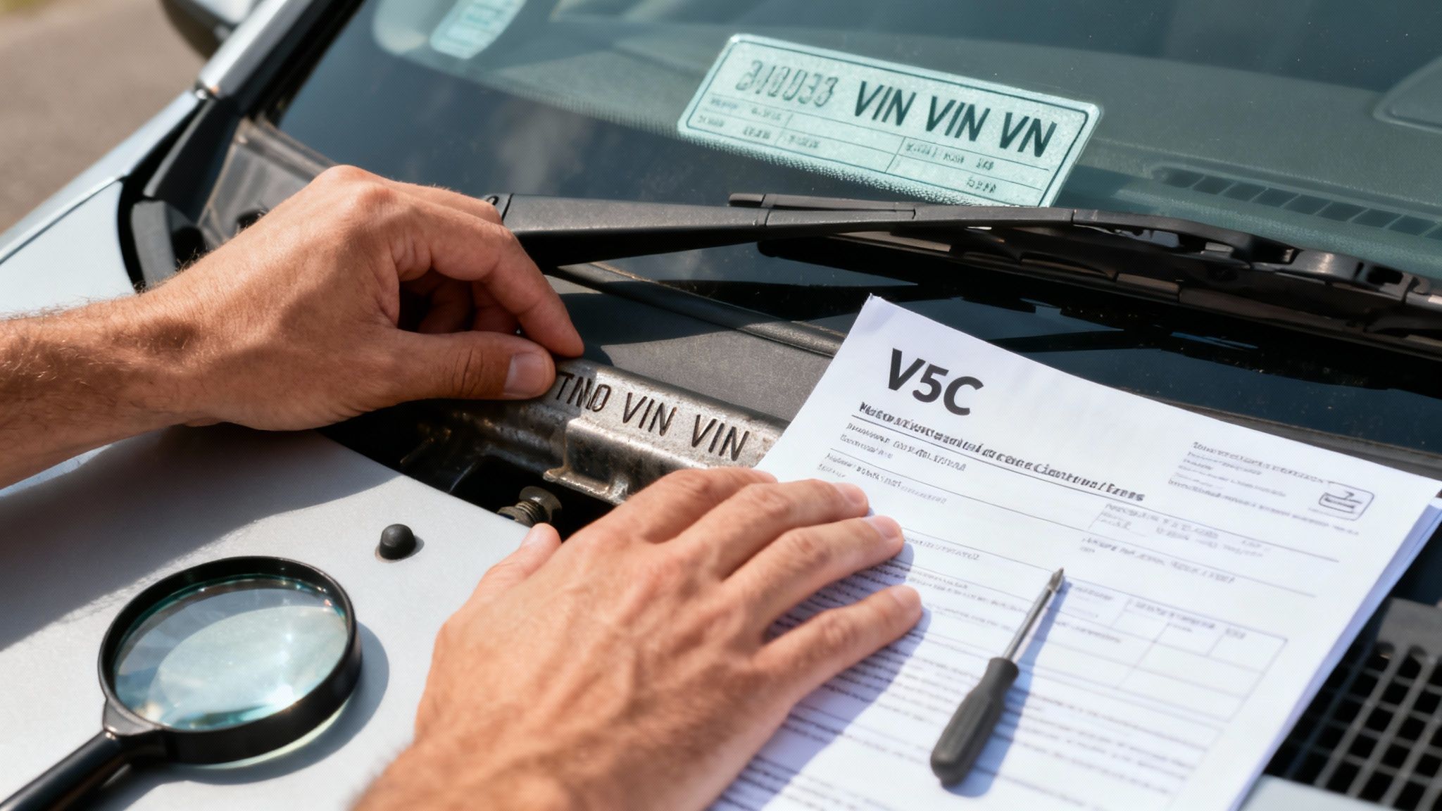 - The V5C Logbook: The VIN printed on the official V5C must be an exact match to both the windscreen and chassis numbers. No excuses.
