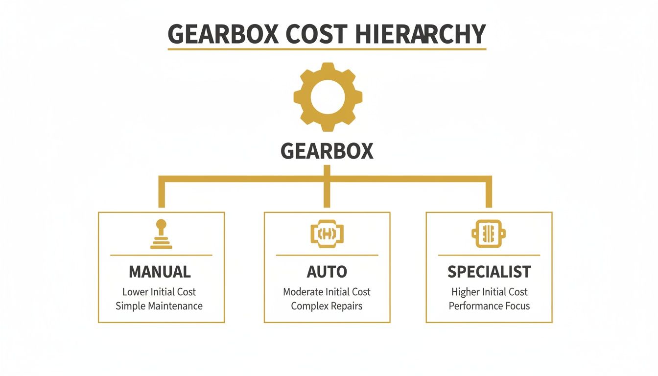 This chart illustrates the core cost components for the most common gearbox types in the UK market.