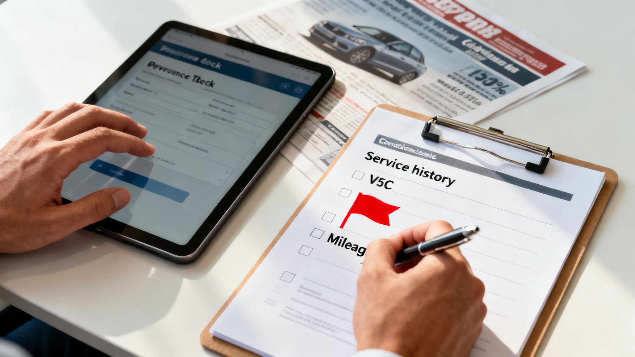 - Is the V5C logbook present, in their name, and registered to the address where the vehicle is being viewed? Any discrepancy is a major red flag for curbstoning or other fraudulent activity.