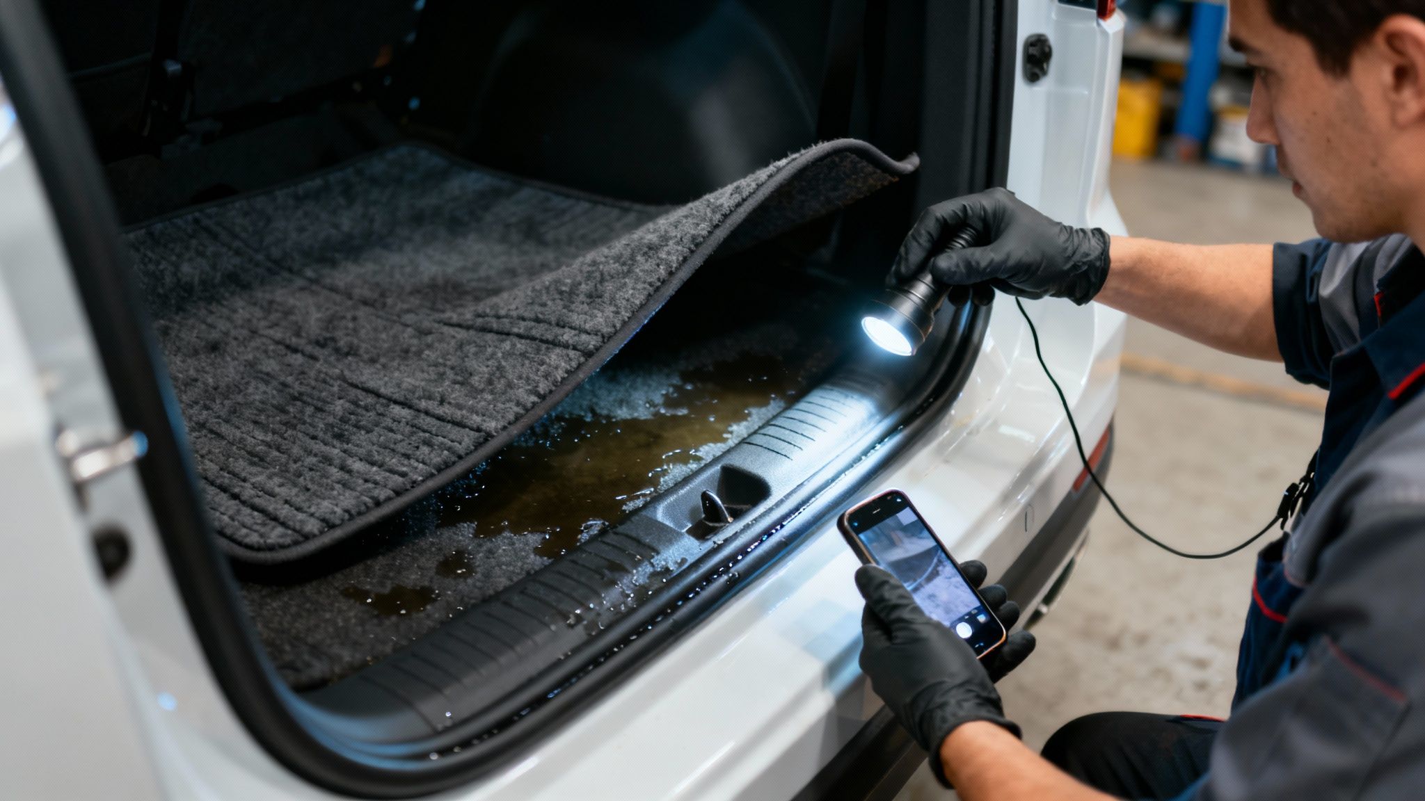 Your hunt should start with door and window seals. Run a careful eye over the rubber seals around all doors, windows, and the boot. Look for any signs of perishing, cracking, or shrinking that could let water sneak past. Next, check for blocked sunroof drains. Sunroofs have small drain tubes, usually running down the A-pillars, designed to channel rainwater away safely. These get clogged with debris all the time, causing water to back up and overflow into the headlining or down into the footwells. Finally, inspect the boot and rear light seals. The boot is another prime suspect. Check the main boot seal for damage and pay close attention to the gaskets around the rear light clusters. These are notorious for failing, allowing water to pool in the boot floor or spare wheel well.
