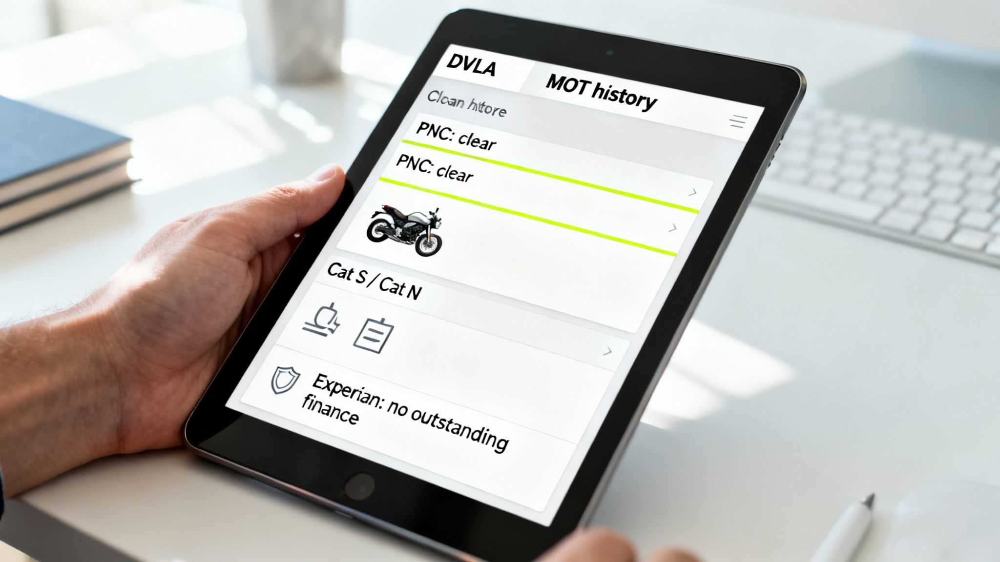 Picture this: you've just brought in a popular touring model that looks like a guaranteed quick flip. The V5C is present, the mileage seems about right, and the bike is clean. But a quick check with AutoProv reveals it has outstanding finance attached to a logbook loan. Just like that, you don't actually have a clear title. The bike is unsellable until that debt is cleared.